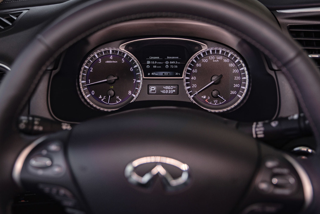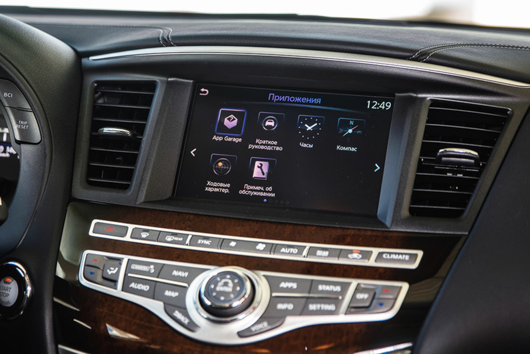 И главным открытием тут стал новый мультимедийный комплекс Infiniti InTouch с модернизированной сенсорной панелью диагональю 8 дюймов. Экран прибавил в цветах, научился лучше откликаться на прикосновения, а интерфейс наконец-то стал интуитивно понятным для водителя. Ура — больше никаких глюков и перегрузок меню. А еще головным устройством теперь можно управлять голосом, и — о, чудо! — даже на русском языке.