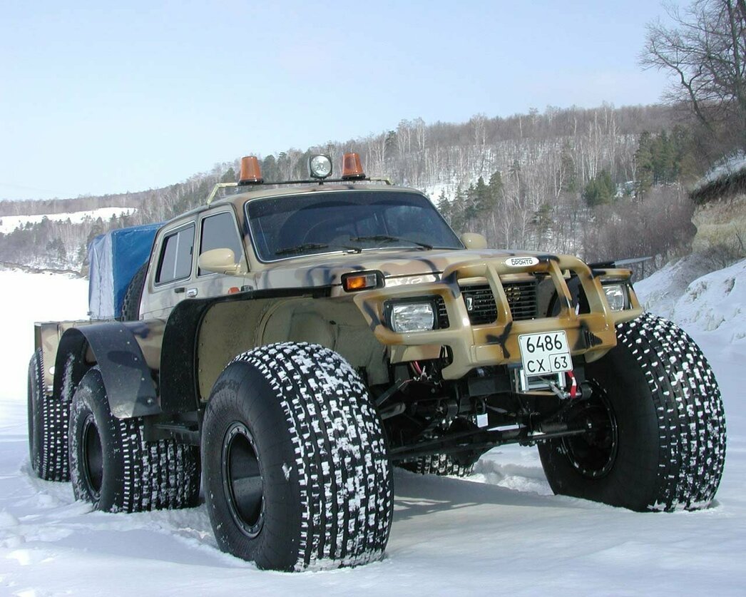 Кто не мечтал сделать из своего легкового автомобиля танк? Для таких мечтателей различные фирмы изготавливают гусеницы. На них LADA 4x4 действительно превращается в вездеход, которому не страшны ни грязь, ни глубокий снег. При этом не надо резать арки или проводить какие-либо дополнительные доработки. Все что нужно, уже включено в цену стандартного комплекта установки. Это сами гусеницы (4 шт.), ступичные адаптеры (4 шт.), ограничители переворачивания (4 шт.), плюс инструкция по самостоятельной установке.