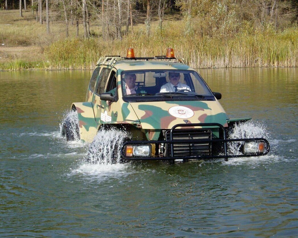 Снегоболотоходы «Марш» тоже выпускают в Тольятти. Особенность конструкции этих машин в том, что кузов от «Нивы» установлен на раму через эластичные резиновые подушки. Мосты взяты от УАЗа и доработаны, на модель установлены бортовые редуктора и рессорная подвеска. Отменную проходимость машине придают шины сверхнизкого давления. Именно за счет них «Марш» может ехать по болотистой местности.