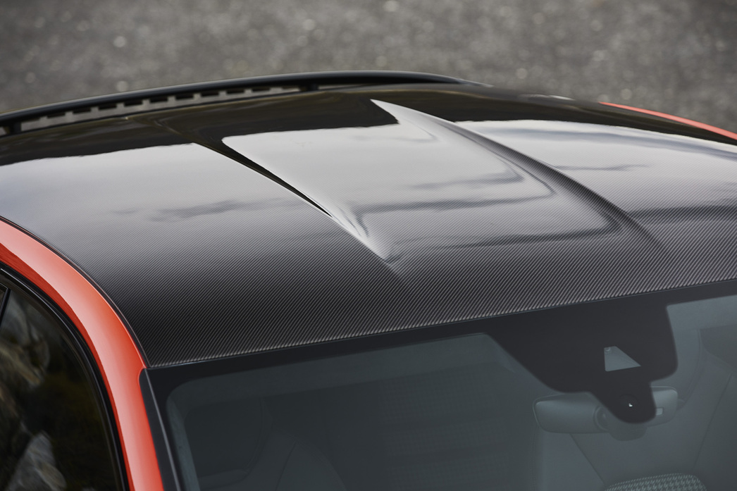 Наконец, было бы непростительной ошибкой ущемить столь имиджевую модель в экипировке. Многое из того, что владельцам «прообраза» обходится в дополнительную копейку, здесь дают «с нуля». Например, есть активный задний спойлер, что автоматически выдвигается на 135 мм на скоростях за девяносто ради прижимной силы или принудительно кнопкой для пущего визуального эффекта хоть на парковке. Металлической крыши не предусмотрено вовсе — только романтичная панорамная площадью 0,92 м2 или (опционально) облегченный (минус 22 кг) вариант из карбона.