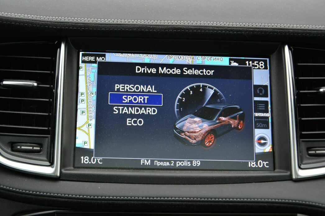 Однако стоит лишь перевести небольшой селектор D-Mode в режим Sport, как Infiniti QX50 тут же преображается — реакции кроссовера буквально на все органы управления становятся гораздо острее.