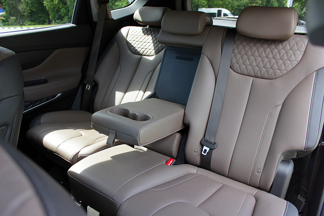 На подмогу «головному» устройству приходит 7-дюймовая цифровая панель приборов, куда выводится вся информация о состоянии автомобиля. В дополнение ко всему этому у Santa Fe есть беспроводная зарядка для смартфонов и актуальная «фишка» для маленьких домочадцев — система безопасного выхода с задних сидений. Работает это до безобразия просто, но эффективно — машина предотвращает разблокировку замков пассажирских дверей при обнаружении приближающегося сзади (в слепой зоне) транспорта, что сбережет не только нервы и расходы на восстановление помятой двери, но и жизнь маленьких (а порой и взрослых) непосед.