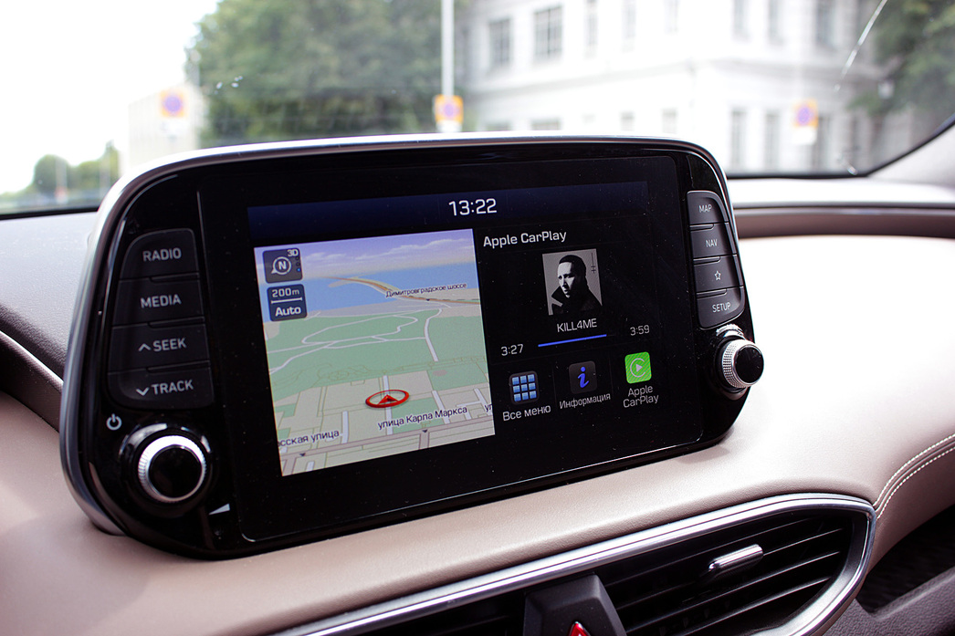 За мультимедию и настройки авто здесь отвечает 8-дюймовый «планшет», по последнему слову моды торчащий из «бороды». Его интерфейс не только понятен и быстро работает, но также поддерживает Android Auto и Apple CarPlay. И, естественно, выводит видеокартинку с задней камеры.