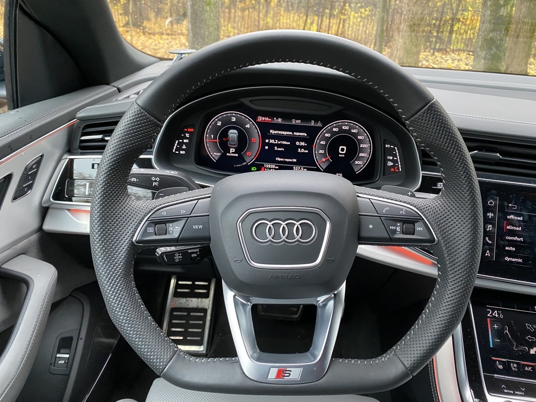 В смысле, что их два — бензиновый мощностью 340 «лошадок» и дизельный о 249 «скакунах». На нынешнем тесте у нас был именно последний, и лично я, если бы располагал деньгами на покупку Audi Q8, взял именно его. Только потому, что при прочих равных он весьма экономичен — на трассе я легко уложился в 8 л/100 км, хотя в предельных по ПДД скоростях себе не отказывал.