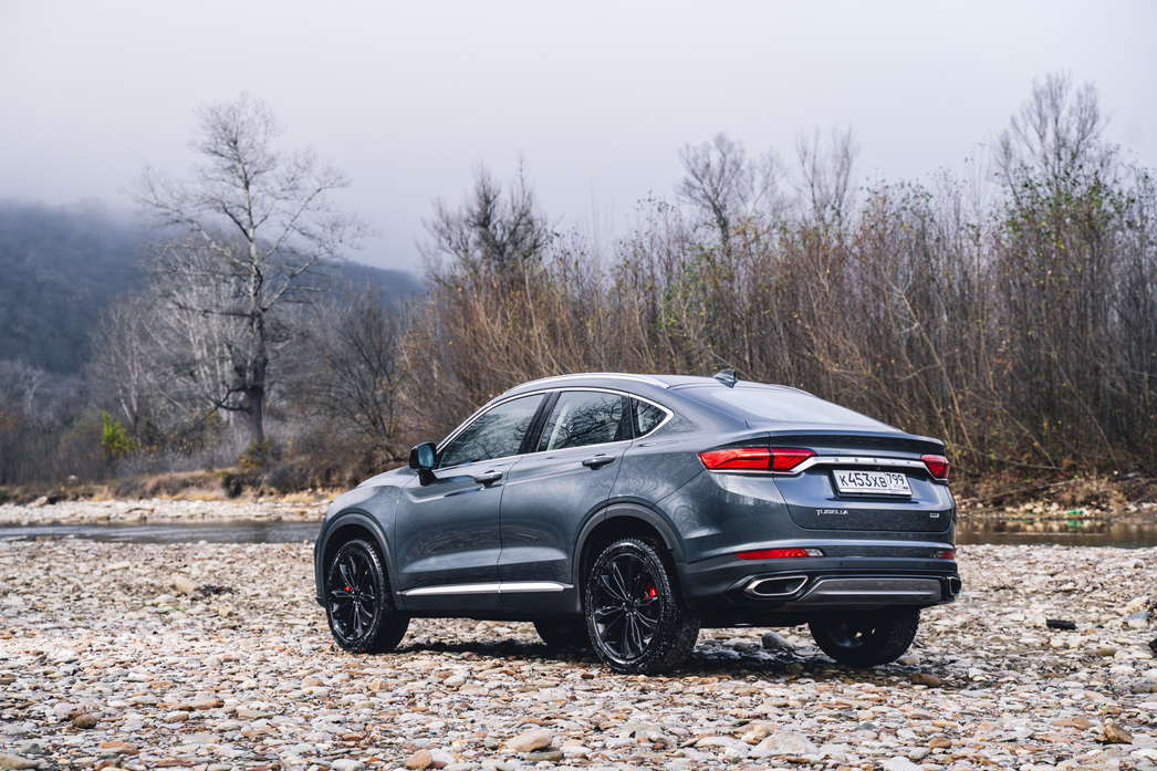 Встречают, как водится, по одежке. А костюмчик китайцу и правда к лицу — он прямо-таки на стиле. Внешний облик автомобиля получился одновременно дерзким и элегантным, агрессивным и ярким, атлетичным и галантным. А главное — типично европейским и с намеком на свежеиспеченные кричащие тренды. Да, поджарый силуэт, черные элементы декора и дизайнерские 20-дюймовые «катки» действительно подчеркивают спортивный нрав кросс-купе. А в чем же премиальность этого фитнес-мобиля? Давайте попробуем выяснить, заглянув в салон.