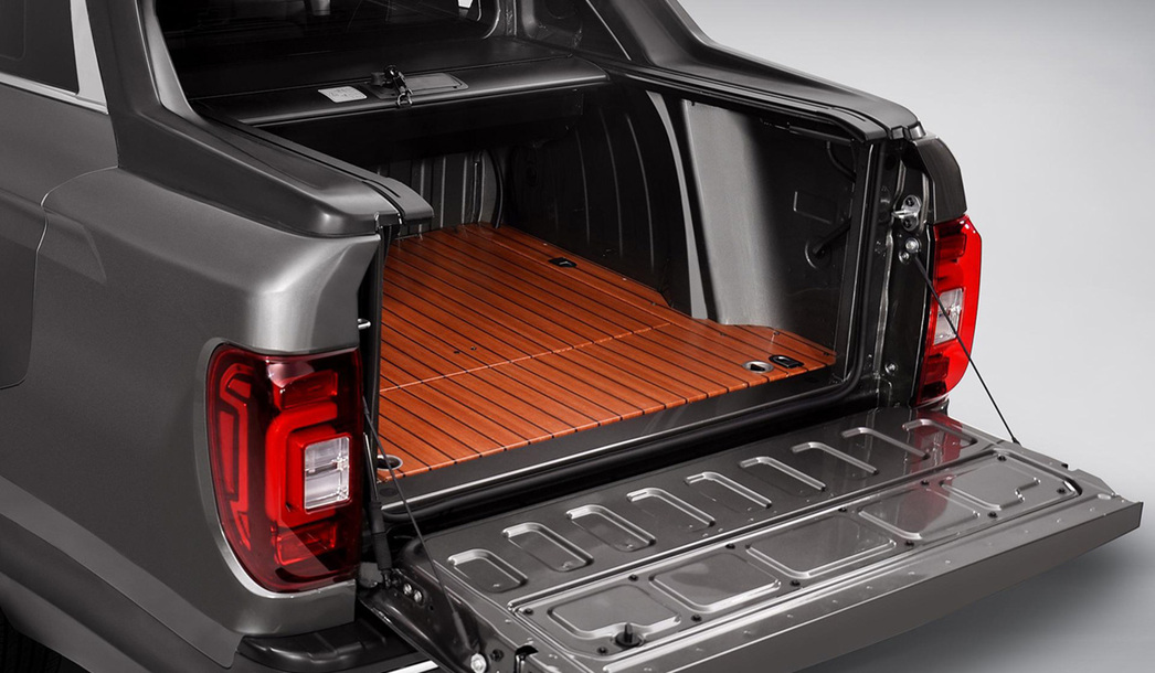 Никаких изменений по технике не произошло: машине полагаются бензиновый турбомотор объемом 1,8 литра (184 л. с.), семиступенчатый «преселектив» и передний привод. Даже боковины исходного кузова остались прежними… Правда, позади заднего дивана теперь появилась металлическая стенка. Размеры грузовой миниплатформы — всего 1125 на 1230 мм, а увезти такой пикап может лишь около полутонны груза.
