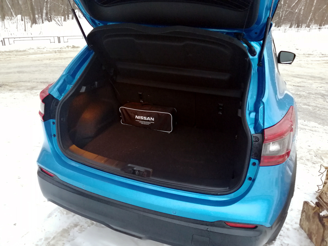 Что ж, места в салоне предостаточно. Но не пошло ли это в ущерб багажному отделению, ведь частенько цена свободы пассажиров — это отсутствие багажника, в который разве что дамская сумочка поместится. В Nissan Qashqai заявленный объем грузового отсека 430 литров. Вроде бы по цифрам много, но на вид все гораздо скромнее. Скажем так, чтобы отправиться в семейное путешествие, вещей придется брать по самому минимуму, поскольку больше двух чемоданчиков и одной дорожной сумки в него — в багажник — едва ли что-то поместится. Хотя, справедливости ради отмечу, что в сравнении с тем же Mitsubishi ASX, у Qashqai «кузовок» однозначно больше.