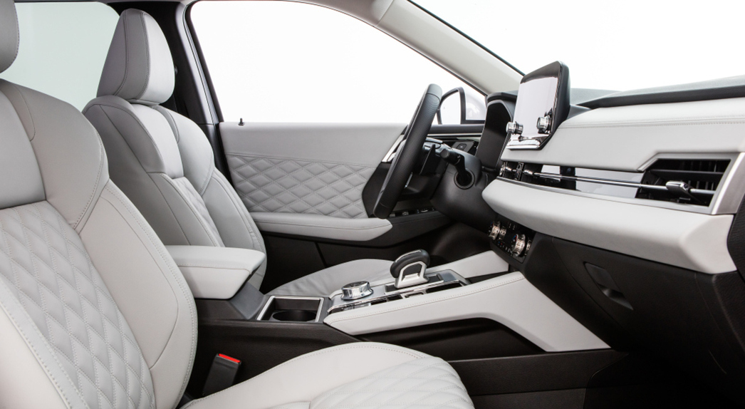 Еще один интересный момент — аж одиннадцать подушек безопасности, включая центральную между передними сиденьями. И, конечно, дело не обошлось без современных фетишей вроде виртуальных приборов, проекционного экрана, джойстика управления трансмиссией, девятидюймового тачскрина медиасистемы, а также адаптивного круиз-контроля. Ты ли это, Mitsubishi?