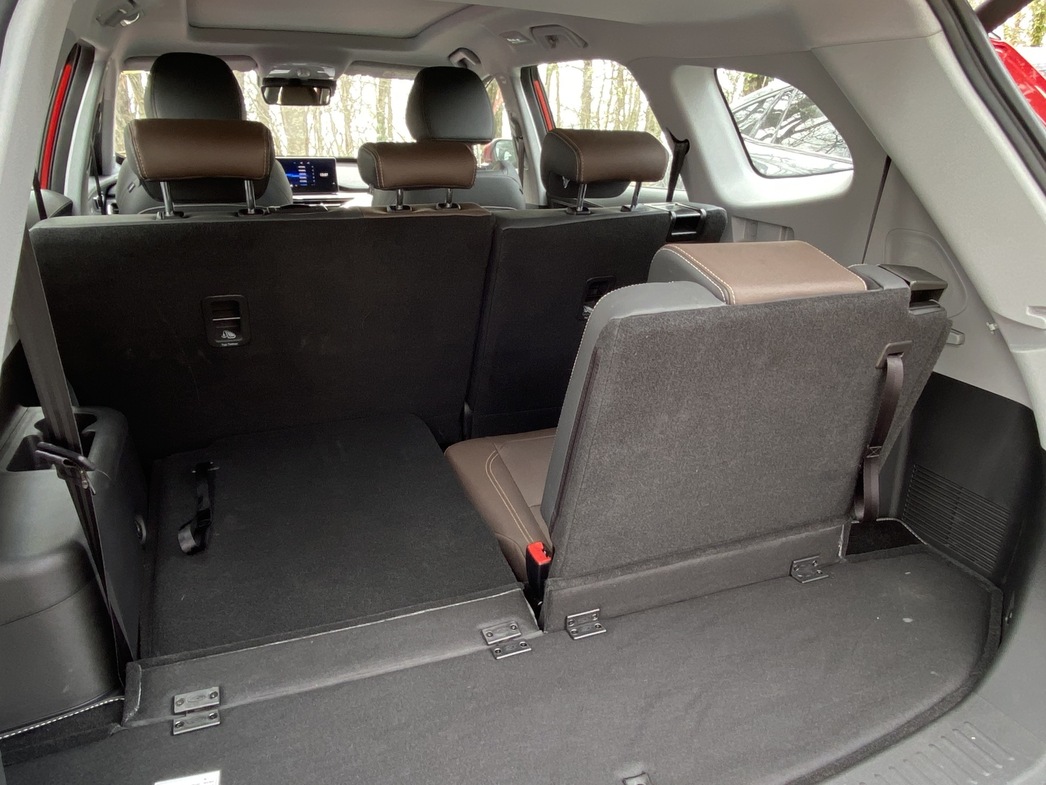 Да и не все пассажиры останутся довольны. Передний, например, может пожаловаться на отсутствие поясничного подпора, а седокам третьего ряда (если это не детишки лет семи-восьми) тут априори с комфортом не разместиться и уж точно не выдержать дальнего вояжа. Утешением, правда, могут служить потолочные светодиодные светильник для всех трех рядов. А вот на среднем диване даже троим взрослым будет удобно: его можно двигать вперед-назад и регулировать наклон спинки.