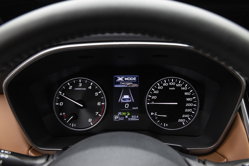 Ну и на бездорожье принудительная фиксация передаточного отношения тоже весьма кстати. Дорожный просвет универсала в 213 мм позволяет заезжать в достаточно глубокие лужи, знаете ли. Из которых выбираться лучше без лишних пробуксовок — то есть на пониженной «передаче». Хотя тут есть фирменный субаровский электронный ассистент для бездорожья — X-Mode. Не особо опытному водителю он очень даже поможет выбраться из грязюки. Да и опытному — братская поддержка.