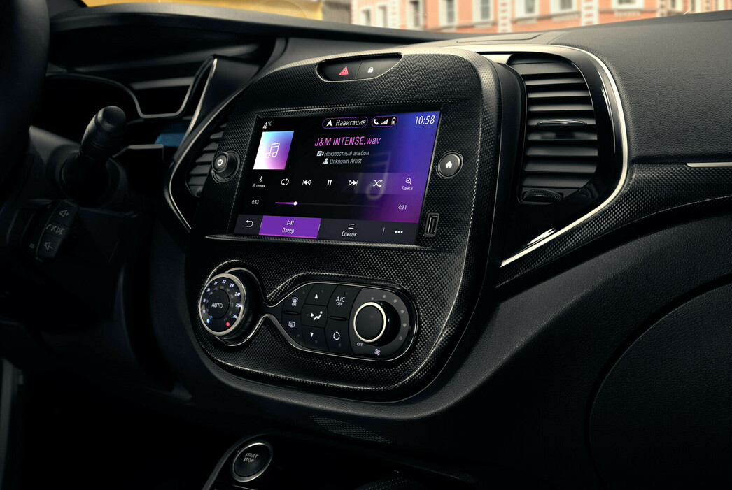 Для Renault Kaptur Intense будет доступно сочетание оранжевого «металлика» и черной или серебристой крыши. Кроме этого, с контрастной крышей можно заказать белый, красный, синий, серебристый и темно-серый цвета кузова. Дополняют образ антенна «акулий плавник», 17-дюймовые колеса серого цвета, накладками на зеркала «под карбон», плюс фирменные шильдики на передних крыльях.
