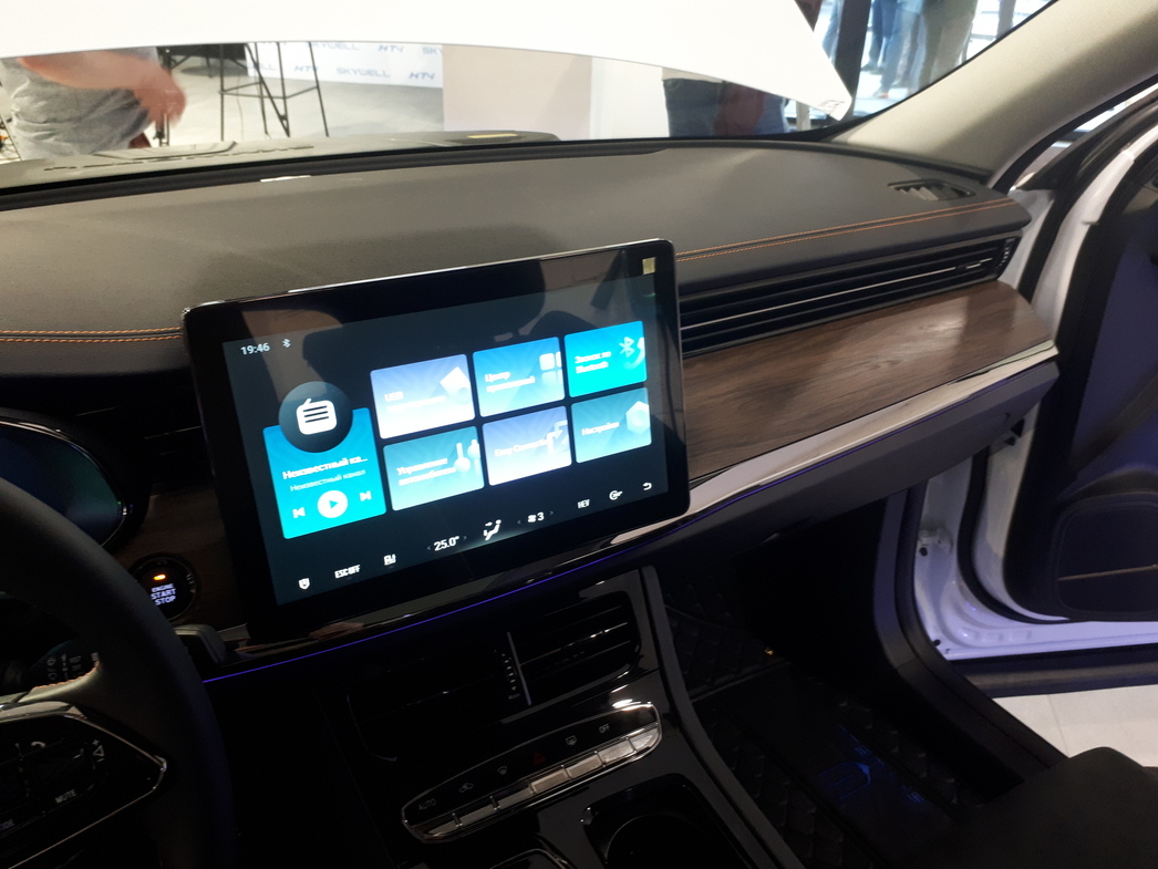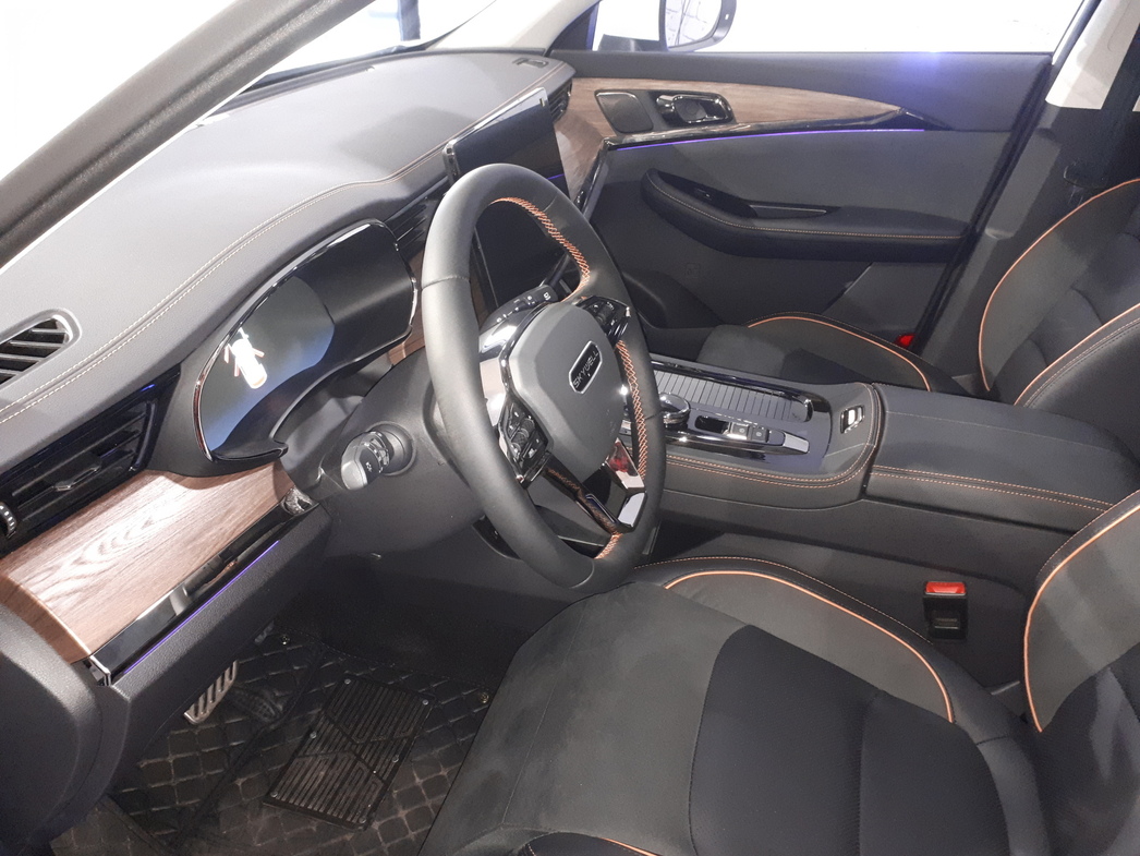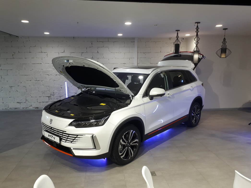 Внешне Skywell HT-i вполне себе симпатичен. Его длина составляет 4720 мм, ширина — 1908 мм, высота — 1701 мм, а размер колесной базы равен 2800 мм. То есть это конкурент Skoda Kodiaq или Mitsubishi Outlander PHEV. В салоне стильно, а кресла удобны. Отделка на довольно высоком уровне. Да и оснащение богато. Есть лазерные фары, люк в крыше, цифровая панель приборов и 12,8-дюймовый экран мультимедиа.