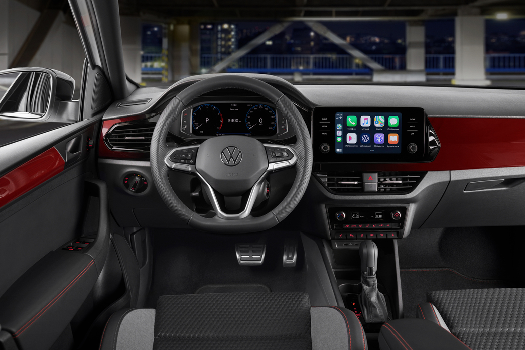 В салоне установлены спортивные передние сиденья, а элементы интерьера украшены красной прострочкой. Продолжают список декоративные вставки, накладки на педалях и порогах, черная обивка потолка, спортивный мультируль и тканевые салонные коврики.