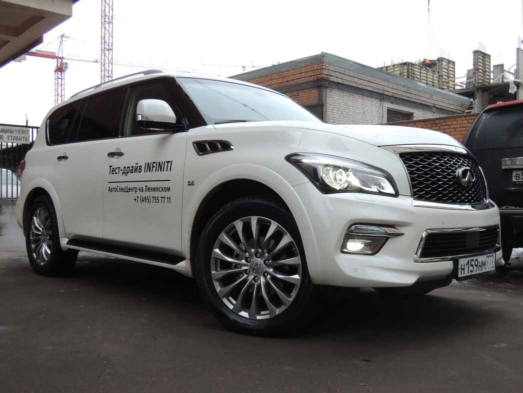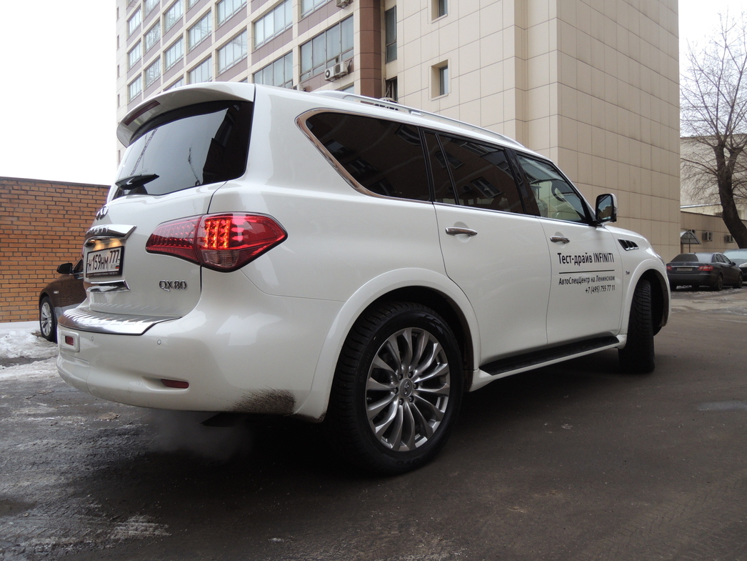 QX80 (еще не так давно QX56) является самым большим и самым мощным внедорожником люксового подразделения компании Nissan — Infiniti. Машина делит платформу с культовым во многих странах Nissan Patrol и оснащается исполинским атмосферным V8 объемом 5,6 литра и мощностью аж в 405 лошадиных сил.