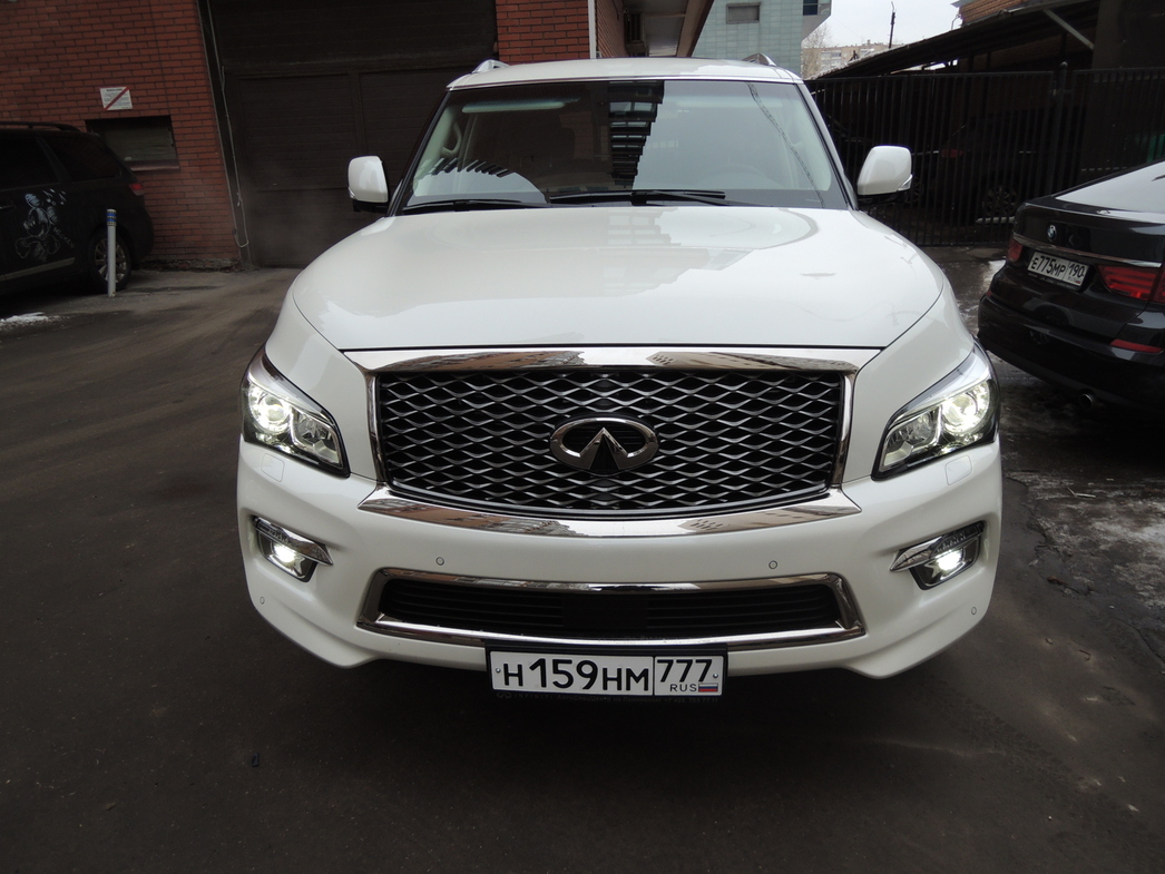 Его экстерьер всегда воспринимался неоднозначно: огромный округлый капот с как бы нависающим «клювом» и узкими фарами по бокам немного напоминает не то древнего мастадонта, не то современного кашалота. Внешность QX80 определенно брутальна. Но, судя по тому, сколько таких Infiniti можно наблюдать на российских дорогах, многим эта японская брутальность приходится по вкусу.
