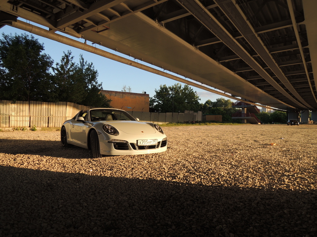Porsche 911 уже примелькался, в Москве этот автомобиль уже не считается редкостью и на стандартные модели прохожие мало обращают внимание. Но не на авто с кузовом Targa! Несмотря на внешнюю схожесть со своими собратьями, Targa все же сильно отличается и потому по-прежнему привлекает взгляды. Помимо иного типа крыши, любой ценитель Porsche обратит внимание и на стильные матовые колесные диски, и на весьма приметную в темное время суток длинную полоску светодиодных габаритных огней, проходящую по всей ширине кормы, и на широченные задние колесные арки (по традиции колеса у спортивных Porsche — разноширокие). Передняя же оптика с такими модными нынче светодиодными ходовыми огнями и традиционными круглыми «лягушачьими глазами» так и вовсе уже примелькалась.