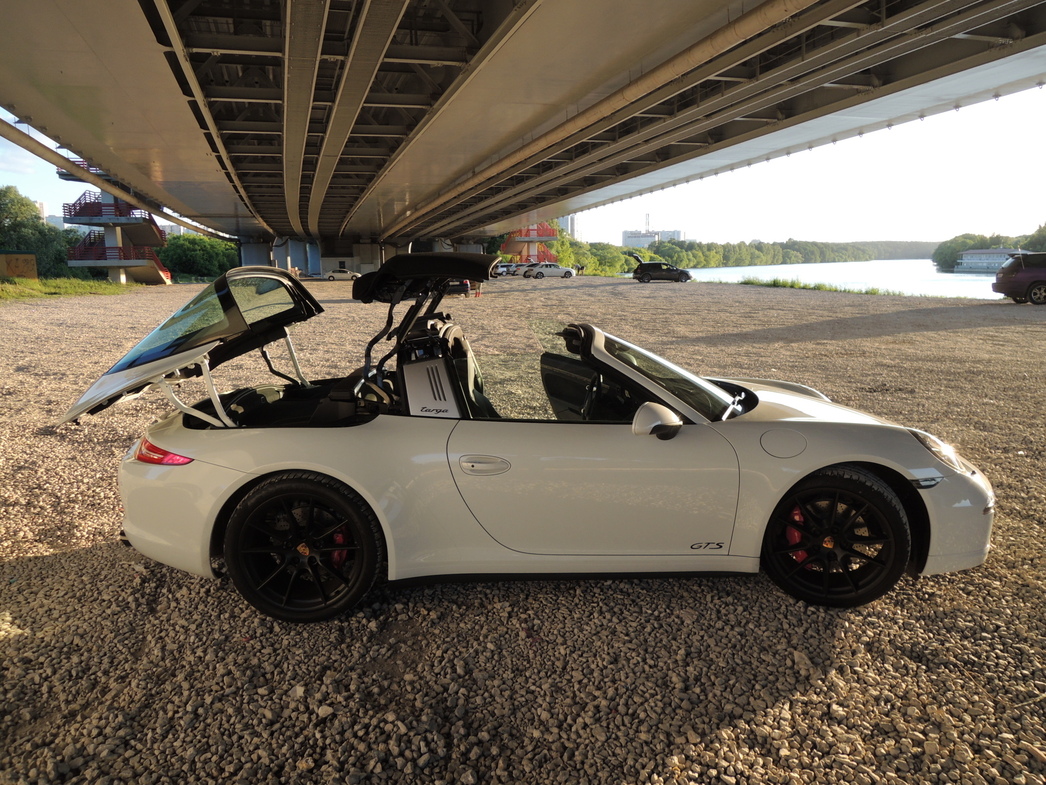Сосредоточившись с прошлого года на атмосферной линейке GTS, компания Porsche активно внедряет атмосферные двигатели на все свои автомобили. И глупо было бы предполагать, что самая известная модель фирмы будет «обделена» 430-сильным атмосферным двигателем. Конечно, есть и более мощные версии вроде Turbo или даже Turbo S, в которых табун переваливает далеко за пять сотен, и они даже чуточку быстрее. Но из старых добрых «атмосферников» именно модель GTS считается самой правильной на сегодняшний день. К тому же, шарма нашему тестовому герою добавляет еще и тот факт, что он обладает довольно редким типом кузова — Targa. Такие были очень популярны в 70-80 годы прошлого тысячелетия на моделях 911 и на некоторых «американцах» вроде Chevrolet Corvette или Camaro. То есть получается, что ты едешь вроде и в кабриолете, а вроде и в купе. При этом, верх откидывается весьма оригинальным способом — сначала назад отьезжает огромный стеклянный колпак, прикрывающий двигатель и крошечные места для задних миниатюрных пассажиров, потом половинка крыши складывается по типу обыкновенного родстера, после чего колпак возвращается в исходное состояние. В отличие от обычного кабриолета или родстера, на Targa невозможно закрыть или открыть крышу на ходу, подобные действия могут исполняться лишь тогда, когда селектор робота PDK находится в положении «Р».