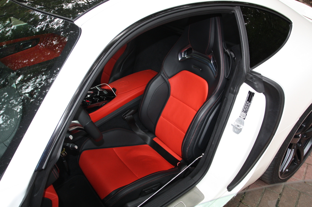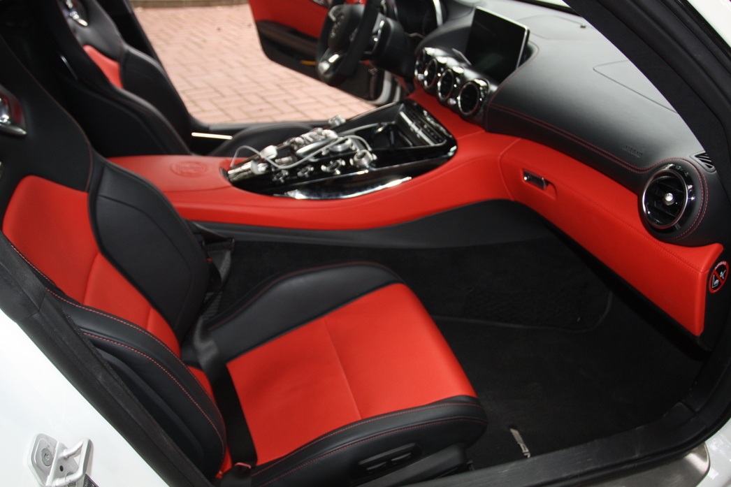 Внутренне пространство этого гоночного болида людям с ярко выраженной клаустрофобией может показаться невероятно тесным, однако нельзя забывать, что вы не в представительский лимузин залезли в ожидании персонального шофера, а находитесь внутри машины, созданной водителями для водителей. Залезая в салон погружаешься в объятия спортивных ковшеобразных анатомических кресел, создается реальное ощущение, что сидишь пятой точкой непосредственно на асфальте. Кокпит словно окружает водителя и пассажира по кругу, на центральном тоннеле расположились большие круглые кнопки, управляющие режимами пилотирования, настройкой трансмиссии и выхлопа, а также музыкой. В тестовой машине салон обтянут ярко-красной кожей, отделан карбоном и алькантарой. В общем, все круто. Позади сидений в типично спортивном стиле расположилась карбоновая балка-распорка для усиления жесткости кузова, ну а за ней начинается багажник, причем отнюдь не крохотного размера, что не так уж и распространено в автомобилях подобного класса. Одним словом, немцы подтверждают главную особенность AMG-GT – это действительно довольно практичный суперкар на каждый день.