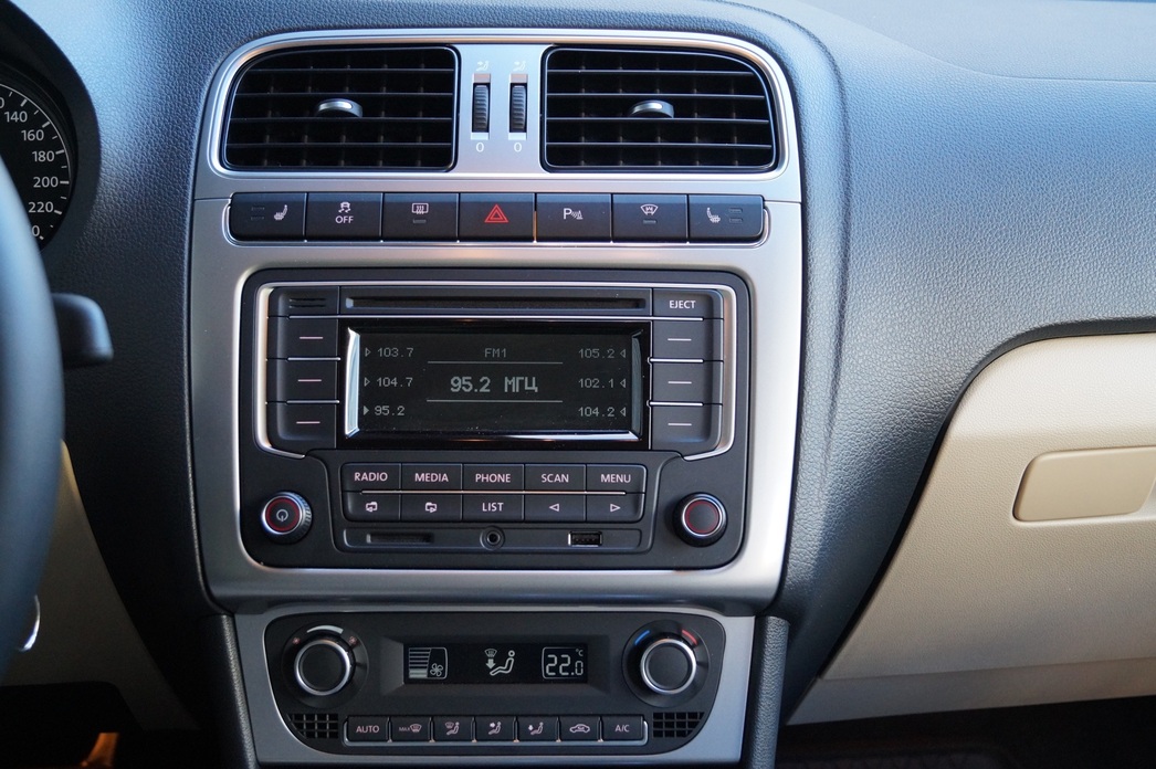 Первое, что бросается в глаза в салоне обновленного Volkswagen Polo – это рулевое колесо. Баранка стала не только многофункциональной, позволяющей управлять мультимедиа, но еще и а-ля спортивной, скошенной снизу. Подверглись легкой доработке элементы центральной панели, обретя матовую хромированную окантовку. Мониторчик остался прежним, но по сравнению с «логановским» его диагональ на пару дюймов больше. Венчают картину комбинированная отделка кресел и модные накладки на порогах – собственно, и вот весь фейслифтинг. К эргономике претензий нет, кроме одной – в подстаканники походная кружка или поллитровая бутылка не войдут, как ни старайся. Да и броский интерьер – это отнюдь не про «Фольксваген».