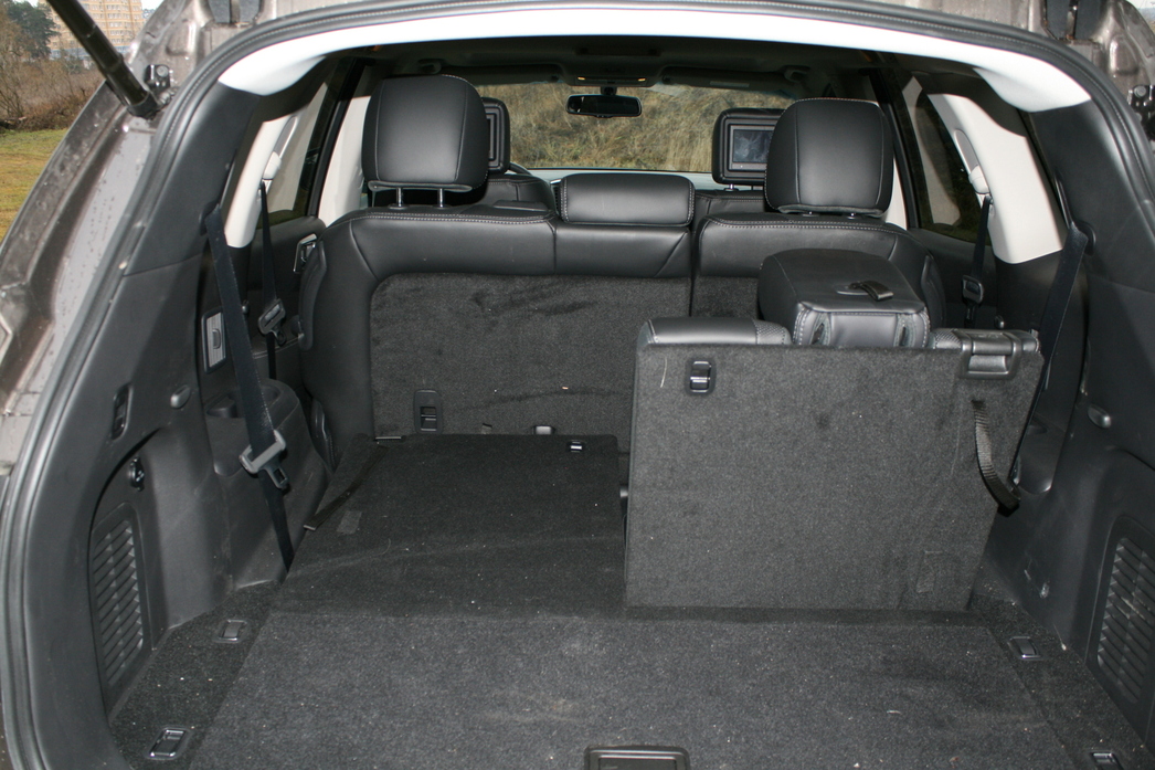 А еще к их услугам собственная климатическая система, подогрев «пятых точек» и телевизионные мониторы в подголовниках передних кресел. Кто хоть раз ездил с мелкими детьми на большие расстояния, оценит насущность последней опции. Еще один штришок в копилку американского духа Pathfinder – третий ряд сидений. Его спинку можно поднять из пола багажника. Поскольку машина это все таки, не маленькая, устроиться в третьем ряду с приемлемым для себя комфортом сможет не только грудной младенец, но и не особо крупный тинейджер. Правда, полезный объем багажника при этом сократиться с 1353 до скромных 453 литров. Единственный взгляд на селектор трансмиссии и – все понятно: последнее поколение Pathfinder в грязь лучше не «макать». Из внедорожных «инструментов» у нее имеется лишь электронные блокировки. В автоматическом же режиме трансмиссии момент передается на передние колеса, а задняя ось подключаются при их пробуксовке. И, кстати, планируя «ударить Pathfinder по бездорожью», не забывайте, что его клиренс уменьшился до несерьезных 181 мм. При том, что у модели-предшественницы он составлял 228 мм! Зато на консоли теперь имеется кнопочка, переводящая трансмиссию в режим буксировки. Американцы же обожают «таскать» на прицепе все подряд: катера, кемпинговые домики, трейлеры с квадроциклами и тележки с навозом.