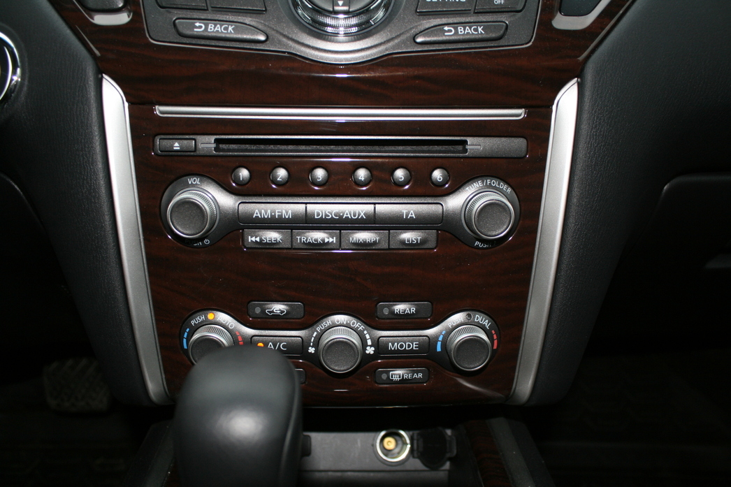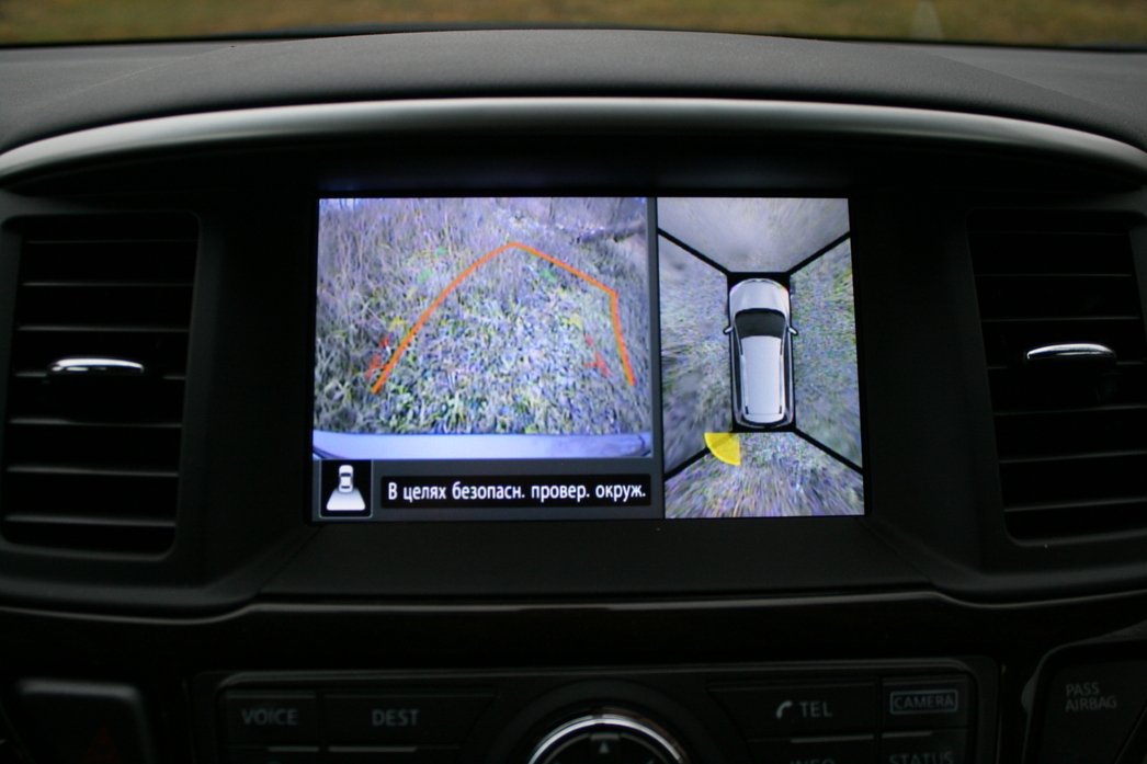 Уже одна только педаль «ножника» под левой коленкой водителя сразу расставляет все точки над «ё»: это машина для рынка США и Канады, и только с такой позиции ее и можно рассматривать. Когда перещелкиваешь свое восприятие на американскую «волну», Pathfinder становится вполне понятной машиной. Приборная доска хоть и электронная, но простоватого дизайна – вполне в непритязательном «американском» стиле. Пластик салона откровенно дубоват. Европейский покупатель, постучав кулачком по такому, недовольно сморщится. А янки на подобную ерунду просто плевать. Наличие мягкой пластмассы для них – вещь пока еще второстепенная. Вот «кожаный салон» и отделка центральной консоли «под дерево» – это, как говорят у нас в России, – «must have». На цветной сенсорный монитор мультимедийной системы (вверху центральной консоли) можно выводить все, что положено такому устройству в современном авто. И «музыка», и «навигация», и настройки систем машины... Вообще, с точки зрения опций она укомплектована всем, чем нужно. Вплоть до камер кругового обзора и электропривода двери багажника. Подчеркнутый «американизм» Nissan Pathfinder проявляется и на задних сиденьях. Про простор и размах для их пассажиров тут можно и не упоминать. Это само-собой.