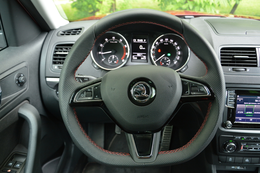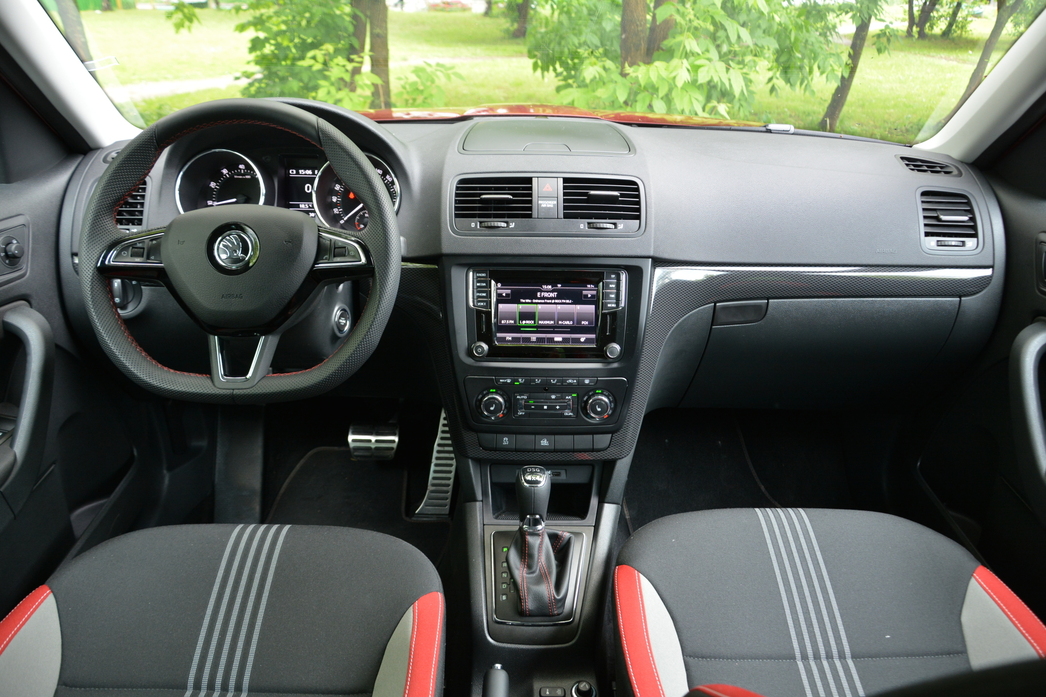 В завершение картины, на передние крылья Skoda Yeti Monte Carlo посадили по шильдику-«бабочке», сообщающему, что перед тобой не хухры-мухры, а чешский «спецэдишн» с претензией на гоночный имидж клочка земли на территории микрокняжества Монако! Салон тут тоже выполнен в «спецдухе». В качестве намека на репутацию Монте-Карло, руль Skoda Yeti Monte Carlo сработан в «раллийном» стиле: это трехспицевое колесо, отделанное кожей и прошитое красной нитью. Рычаг 6-диапазонного «робота» имеет аналогичную отделку. Как, кстати, и сиденья. Заговорив о последних, нельзя не отметить их хорошо развитую боковую поддержку. Проверить ее кондиции посто – благодаря неплохим динамическим возможностям машины. 152-сильный бензиновый турбомотор объемом 1,8 литра позволяет Yeti очень неплохо ехать.