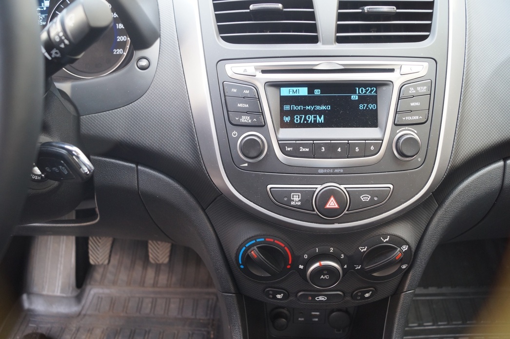 Едет Solaris неплохо, а на «механике» со 123-сильным двигателем – так даже довольно весело. Разумеется, сравнивать его повадки с поведением на дороге признанных корифеев драйва бессмысленно. Передачи переключаются четко и прогнозируемо. Ходы рычага коробки длинные, но в пределах разумного, а рукоятка удобно ложится в руку.