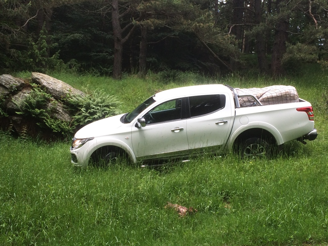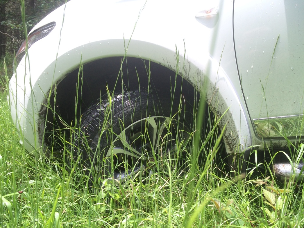 Но вот вернуться на проселок после фотосессии на альпийском лужке с высокой густой травой, к тому же изрядно промокшем под недавним дождем, мы смогли только благодаря режиму, в котором все колеса ведущие, а межосевой и межколесный дифференциалы заблокированы.