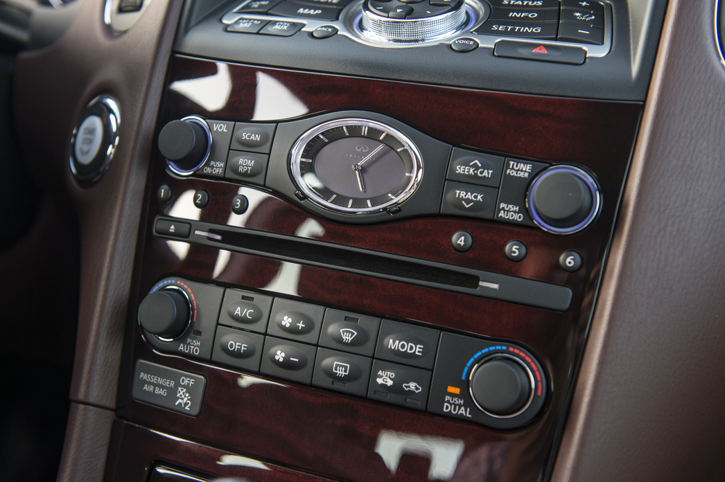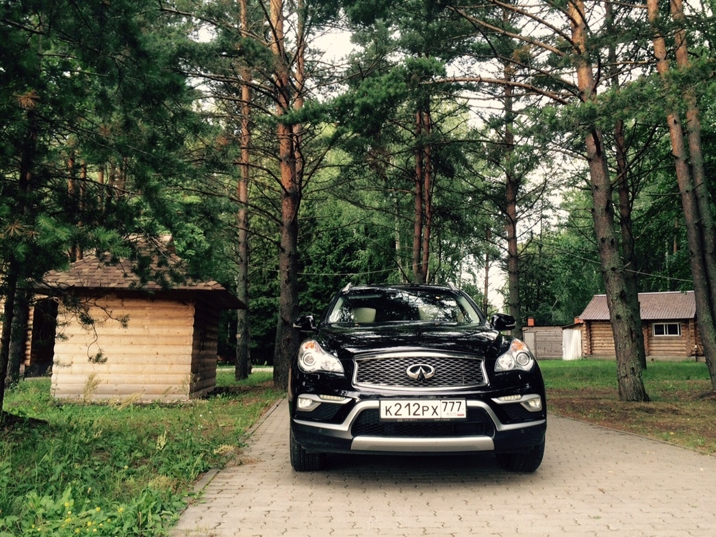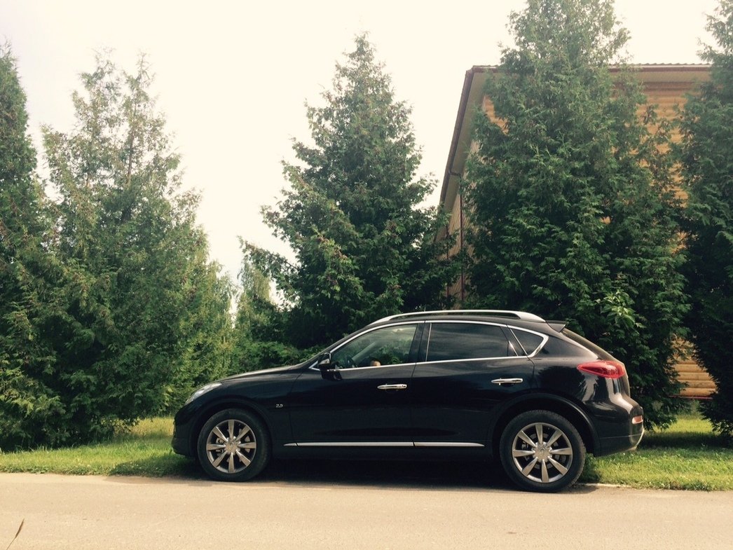 Если острота руля — это не про «Инфинити», то прожорливость — как раз про нее! Кроссовер с безальтернативным 2,5-литровым бензиновым мотором о 222 «лошадях» поедает с включенным «круизом» по трассе около 12 литров на сотню. Согласитесь, совсем не бюджетно. Про аппетит во время агрессивного педалирования или старта-торможения в городе я, пожалуй, лучше умолчу. Что до динамики, то невзирая на вполне себе адекватный табун по капотом, машина ускоряется посредственно. Хорошо хоть семидиапазонный «автомат» позволяет работать вручную — эмоций гонщика вы, конечно, не ощутите, но заставите автомобиль быть чуточку порасторопнее. Впрочем, для размеренных покатушек большего и не требуется.