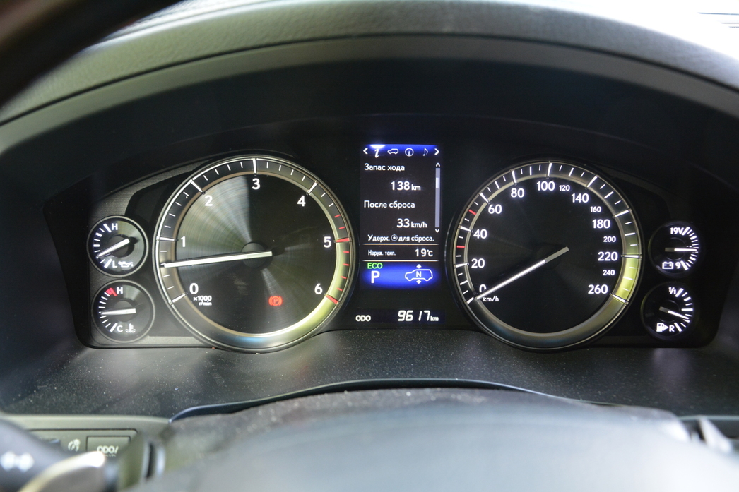 На водительском месте тоже всего с избытком — и простора, и дерева в отделке, и 12,5 дюймов монитора мультимедийной системы. Впрочем, дерево и большой «телевизор» — это правильно. Без него менеджеру в автосалоне сложно будет объяснить клиенту, за что он платит лишние 1,5 млн. рублей, хотя в соседнем зале стоит практически такая же машина, но с шильдиком Toyota.