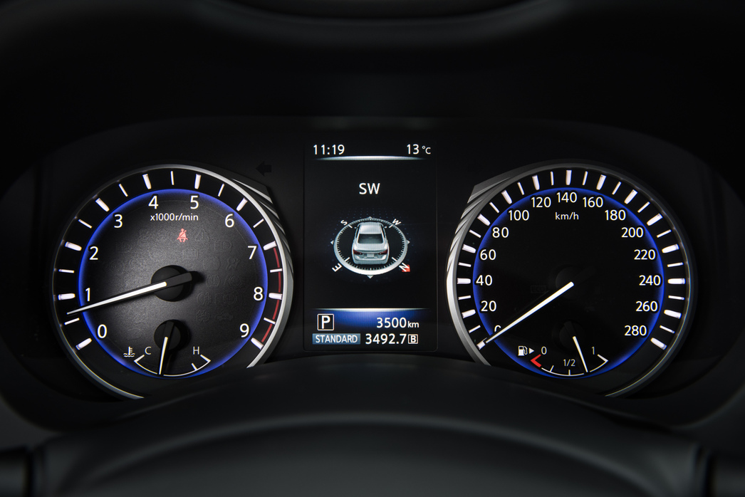 До того, как забраться в машину, я специально не смотрю в технические характеристики, представленные производителем и, следовательно, кроме мощности в 405 л.с., наличия «автомата» и полного привода больше не знаю об автомобиле ровным счетом ничего. С нажатием кнопки пуска двигателя никаких изменений в уровне акустического комфорта не происходит. Но, собственно, это неудивительно — шумоизоляцию в Infiniti умеют делать на высшем уровне: закрытая дверь как гильотиной отрубает все внешние звуки. Поэтому и мотора на невысоких оборотах в салоне совершенно не слышно.