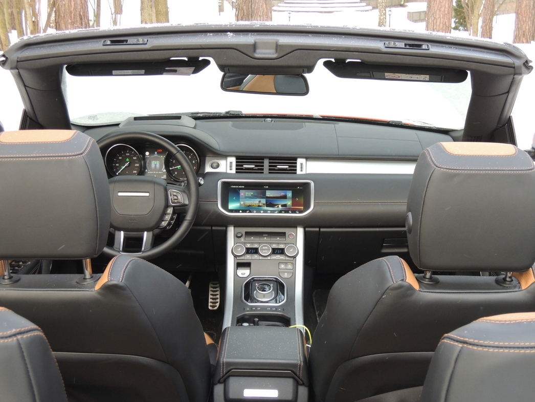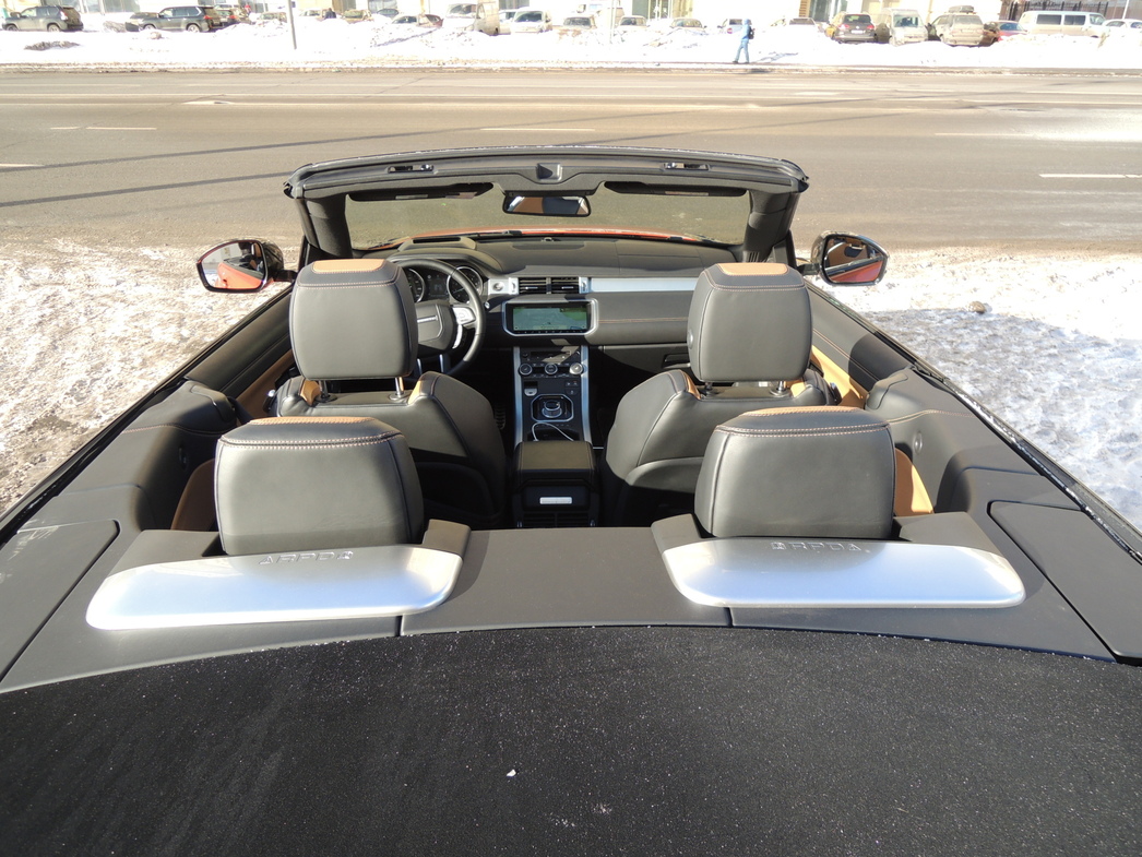 В целом же — ощущения как от обычного Range Rover Evoque, разве что на центральном тоннеле притаилась заветная клавиша, которая убирает складной верх в нишу над багажником. Прямо по центру разместился большой цветной дисплей с функцией touch-screen, обладающий хорошей четкостью и яркостью — информация с него читается без проблем в любую погоду и любое время суток — однако по-прежнему так и несумевший до конца победить свои извечные «болячки». Временами происходят зависания, подтормаживания, а иногда даже и самопроизвольная перезагрузка. Причем прямо на ходу.
