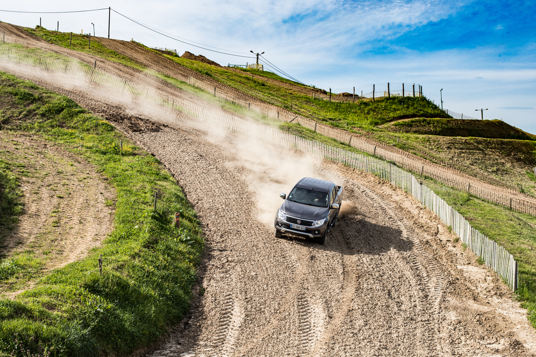 Освежить ездовые впечатления от FIAT Fullback мы отправились не абы куда, а под Рен, на самый настоящий внедорожный трек, где за полчаса до наших покатушек проходил этап Чемпионата мира по мотокроссу Гран При Франции. Только представьте, что пришлось испытать итальянскому пикапу — это и 45-градусные барханы, и грязевые ванны, и раскатанная бульдозерами колея, и глубокие овраги.