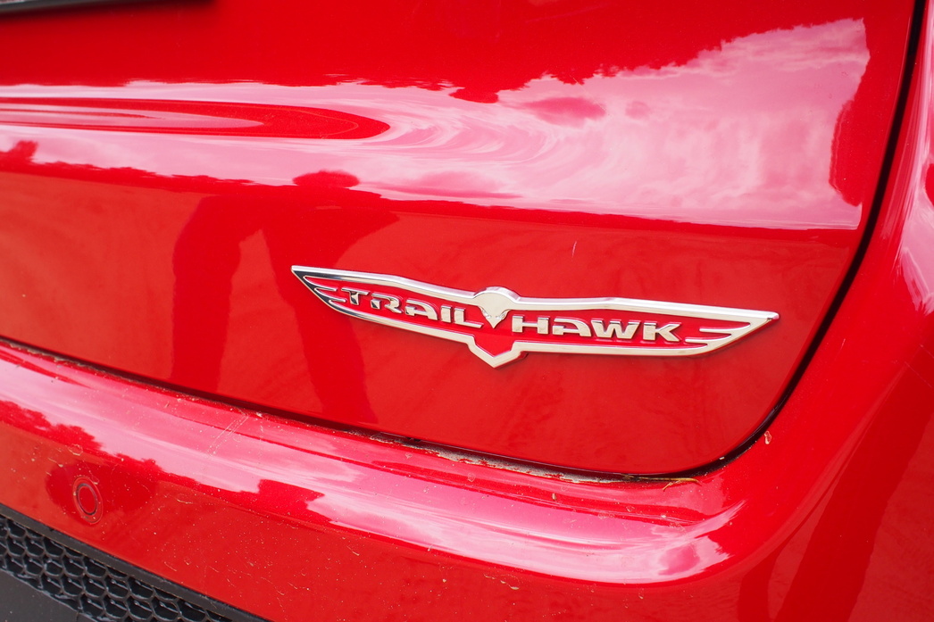Отличить Trailhawk от других модификаций при известной наблюдательности очень просто. Достаточно взглянуть автомобилю в лицо попристальнее. Если вырез в бампере один, без двух боковых дополнительных амбразур по бокам — значит, это искомая версия. Можно дополнительно полазить с лупой вокруг машины и найти, скажем, круглый значок Trail rated 4x4 на переднем крыле — печать, удостоверяющую, что модель долго мучали изнурительными марш-бросками по самым сложным маршрутам. Или отыскать надпись Trailhawk в размахе ястребиных крыльев на двери багажника.
