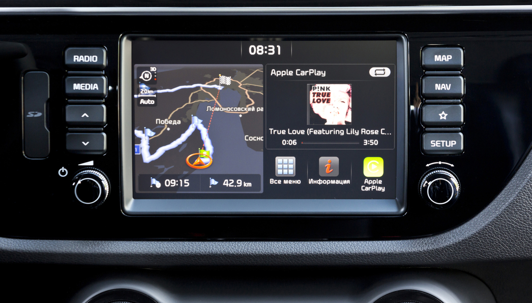 Семидюймовому сенсорному дисплею мультимедийной системы с отменной графикой изображения может позавидовать — на секундочку — даже Maserati! Головное устройство умеет превращать центральный экран в планшетный компьютер, синхронизируясь со смарфтонами на базе iOS и Android, а также показывать на карте пробки в режиме реального времени.
