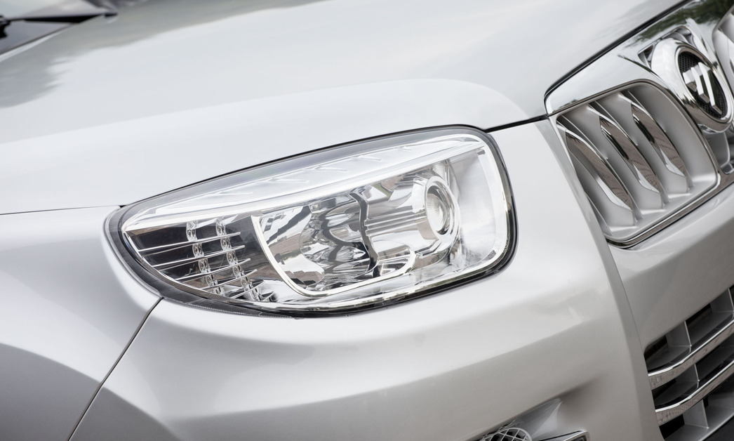 Но стоит зайти спереди и посмотреть ему «в глаза», как вся брутальность рассыпается в пух и прах. Представьте себе накаченного гиганта с наивной детской мордашкой. Чем руководствовались китайские дизайнеры, рисуя такое «лицо», остается догадываться. В стилистике передней части внедорожника читается громкий привет из конца девяностых, и, судя по характерным закругленным слегка приплюснутым фарам, производитель нашел повод для ностальгии по старому доброму «биодизайну». А уж замысловатый китайский узор на миниатюрной решетке радиатора с круглым логотипом уносит в совсем глубокую историческую эпоху автомобильного дизайна.