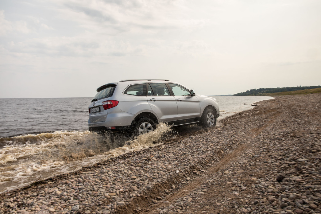 Зато удалось задорно «пробежаться» как по сухому, так и по мокрому гравию на набережной озера Ильмень, с азартом «пройтись» по сырой грунтовке, форсировать на «понижайке» пригорок по сырой траве, «окунуться» в глубокие лужи, благо что глубина преодолеваемого брода у внедорожника составляет 800 мм. Кое где, приходилось менять режимы трансмиссии, отключать систему стабилизации, но, конечно, все это не стало серьезным испытанием для «китайца», хотя есть все основания предполагать, что потенциала у него хватает для более жестких внедорожных условий.