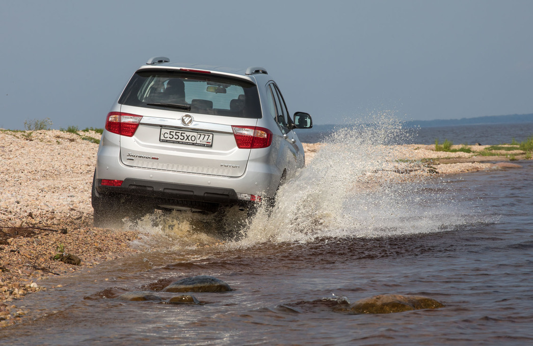 Одной из главных составляющих внедорожного арсенала Foton Sauvana можно считать раздаточную коробку BorgWarner с тремя режимами: заднеприводный 2H, межосевое распределение момента Auto и понижающая передача 4L. С длинноходной подвеской, клиренсом 220 мм, углом въезда 28 и съезда 25 градусов «китаец» вроде бы и готов к отчаянным подвигам на пересеченной местности, но испытать его на полноценном офф-роуд полигоне возможности не было.