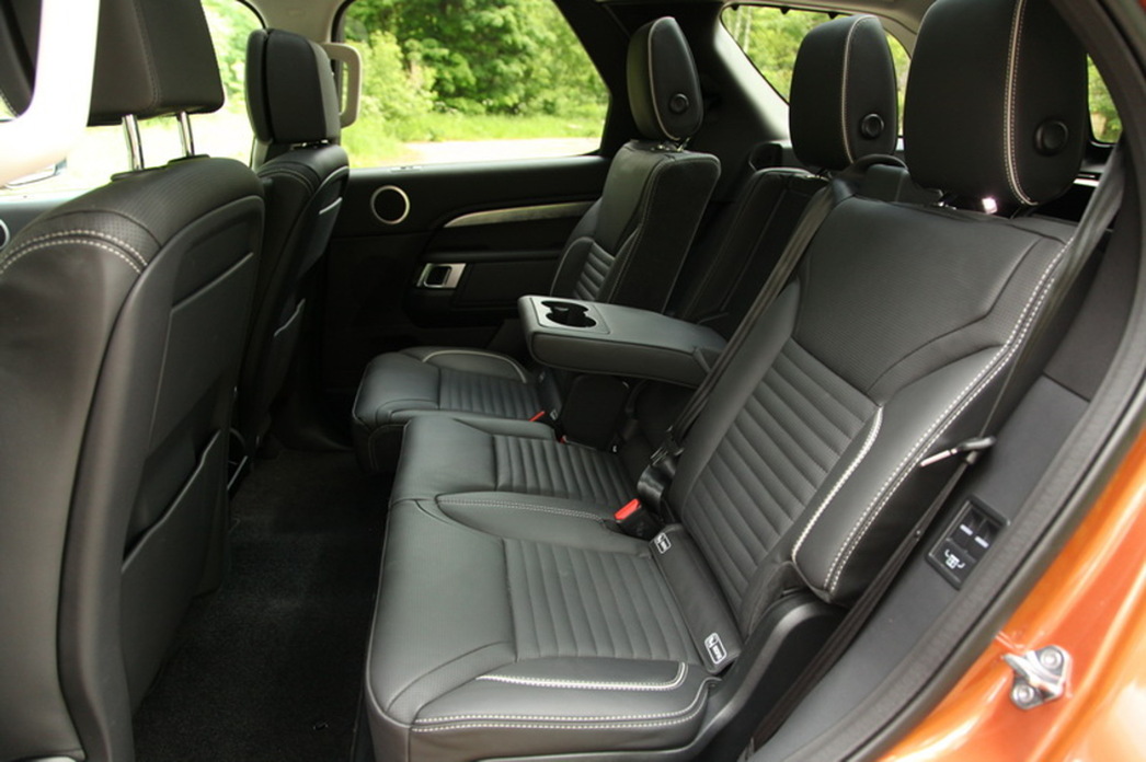 Помещаются они и в KIA Picanto, и в Renault Logan, и еще много куда. Только не сидят с комфортом, а именно помещаются. Так и в новом Discovery — явно заниженная крыша давит не только спереди, но и сзади. Не спасает даже та стильная ступенька, которая, как дань прошлым поколениям, перекочевала на крышу «пятерки». Не верите? Заберитесь на второй и третий ряды внедорожника, и сами все поймете. Места здесь ничуть не больше, чем в четверке, а багажник даже меньше — проверено с рулеткой!