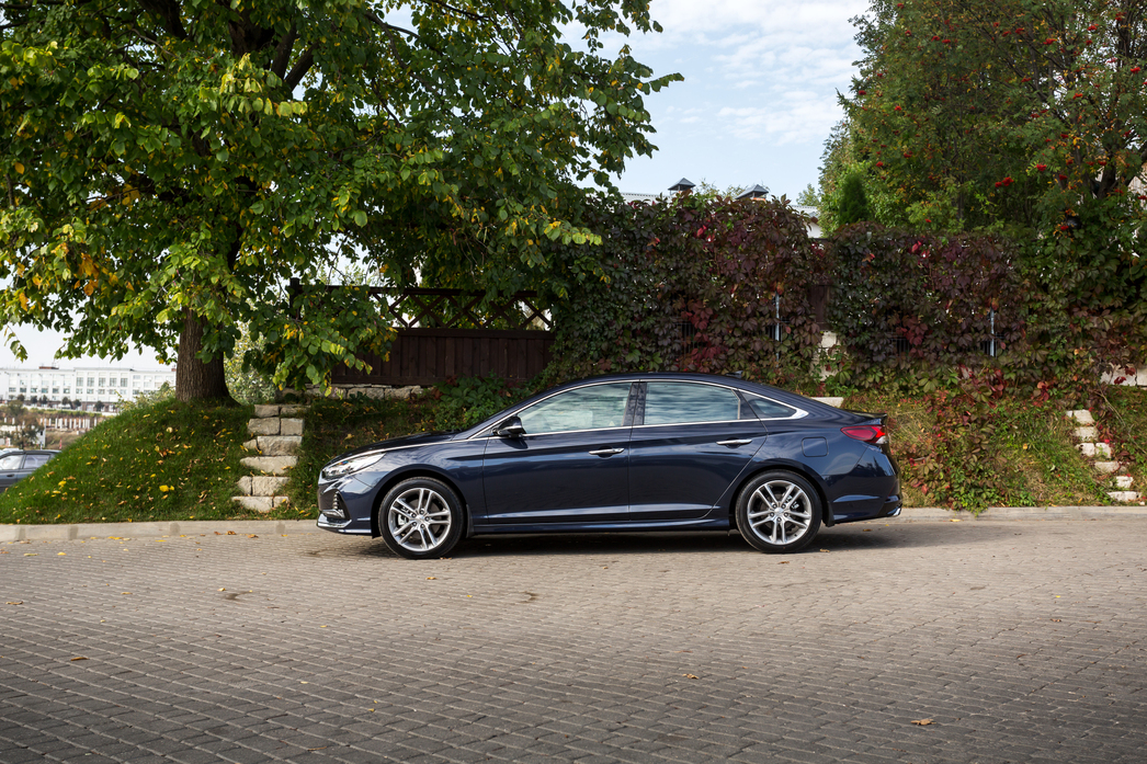 Даже с обилием сверкающего хрома на кузове, внешность седана Hyundai Sonata VII поколения не назовешь вызывающей и кричащей. В габаритах 4855х1865х1445 мм не нашлось места дизайнерским откровениям и экспериментам со стилем, если не считать подоконную линию молдинга, вытянутую до самых фар. В остальном все выдержанно в корпоративных «струящихся линиях» и элегантных полутонах. Такой облик обычно не бросается в глаза, но и ничем не раздражает. При этом «корейца» не назовешь «сереньким», и со всех ракурсов он смотрится современно и актуально, а если речь идет о сдержанности, то только, как об аристократическом чувстве мере. Спасибо художнику Крису Чепмену из калифорнийского дизайн-центра Hyundai.