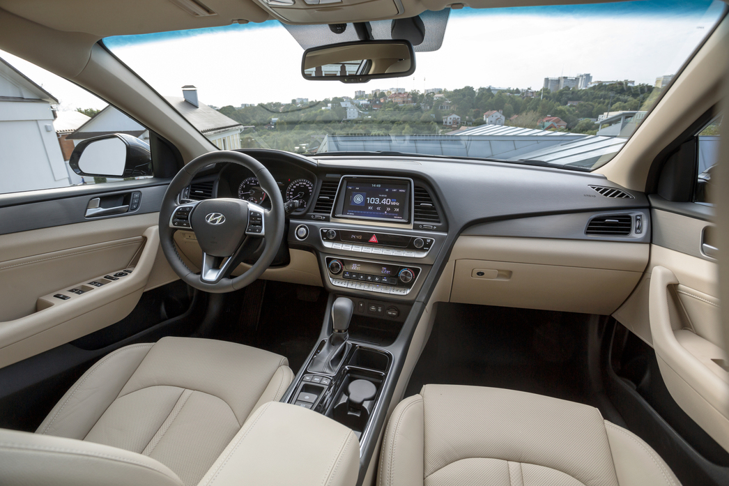 Sonata гостеприимна для водителей с самой выдающейся комплекцией — передние дверные проемы достаточно просторны, низкая посадка в удобном кресле ничем не стеснена. Правда, при наличии люка, съедающего пять драгоценных сантиметров лишнего пространства, у рослого рулевого затылок будет чесаться о потолочную панель. Та же ситуация на втором ряду — просторы царские, ногам свободно, пол почти плоский, диван удобный, хоть спинка и не регулируется, а голова при росте 186 см упирается в потолок. К сожалению седан не приспособлен для перевозки длинномеров, так как в спинке заднего дивана люк отсутствует. Размер багажного отсека здесь средний в классе — 510 л. В то время, как у Mazda 6 — 438 л, Toyota Camry — 506 л, Ford Mondeo — 516 л, Skoda Superb — 584 л.