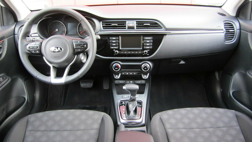 Специалисты, рисовавшие интерьер, тоже не зря ели свой хлеб. Дизайн салона получился лаконичным и современным, при этом отнюдь не раздражающим избытком кнопок и регуляторов — все по делу и на своих местах. Может качество отделочных материалов и не на самом высоком уровне, зато на вид пластик передней панели вполне себе добротен и презентабелен. Похвально и то, что корейцы проектировали «Рио» с учетом российских реалий – даже рослые водители с полным комфортом будут чувствовать себя на водительском кресле благодаря регулировкам рулевой колонки по высоте и вылету, а также приличному диапазону перемещения сиденья вверх-вниз и в продольном направлении. К тому же для нового Rio предлагается пакет теплых опций, включающий в себя подогревы всех кресел, зеркал, рулевого колеса, форсунок стеклоомывателей и даже лобового стекла. Уже в базовой комплектации можно рассчитывать на фронтальные подушки безопасности, кондиционер, электроусилитель руля, электропривод передних стекол, ABS с системой распределения тормозных усилий EBD, системы курсовой устойчивости ESC и помощи при трогании на подъеме HAC, а также системы контроля давления в шинах и предупреждения об экстренном торможении ESS. А это, на минуточку, бюджетный автомобиль.