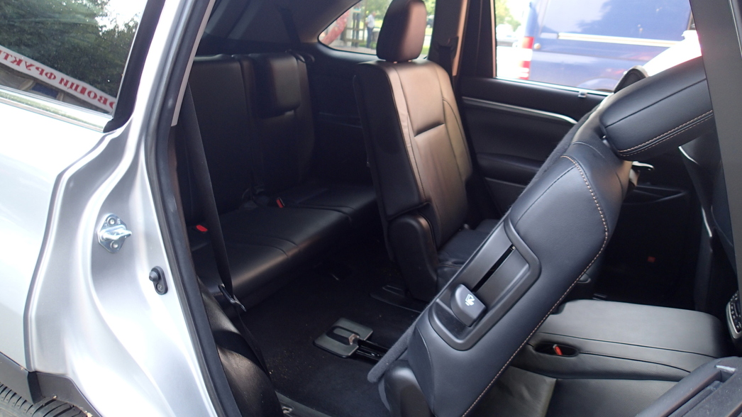 На большом водительском троне с выраженной боковой поддержкой и с широким диапазоном регулировок легко почувствовать себя царской особой, тем более, что над головой для короны места хватит. На просторном втором ряду уместятся три «придворных», а на последнем, куда, кстати, выведены воздуховоды и где установлены подстаканники, приютятся разве что дети. Оба задних ряда просто складываются, образуя ровный пол и 2370 литров свободного пространства. При сложенных задних сидениях размер багажника составляет космические 813 л, при разложенных — 252 л. Чем не семейный автомобиль?