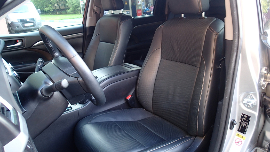 Здесь трудно промахнуться мимо какого-либо прибора, кнопки или другого элемента управления из-за их американских размеров. В средней части центральной консоли красуется интерактивный дисплей медиасистемы Toyota Touch 2, который хотя и не спешит мгновенно реагировать на прикосновение, но радует глаз качественной графикой. Ниже расположен блок климат-контроля с явно перегруженным узким монохромным экраном, а под ним в добрую половину ширины торпедо растянута полка для мелких вещей.