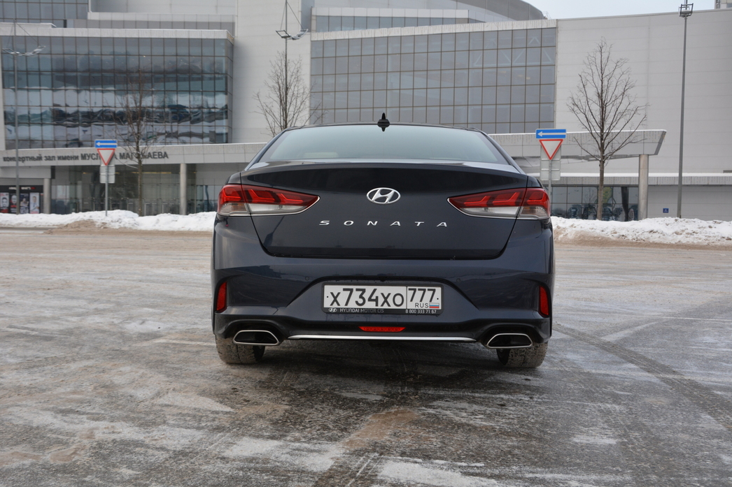 Более предметное знакомство с оформлением приборной доски, центральной консоли и дизайном «картинки» на тач-скрине «мультимедийки» приводит к парадоксальному резюме: в Hyundai Solaris все то же самое смотрится заметно более современно. Что только подтверждает, что Sonata — типичный американский седан. В Европе машина аналогичного размера будет, скорее всего, работать либо в корпоративном автопарке, либо в такси. Для дома для семьи ее могут купить только за океаном. Или в России, где тяга ко всему большому, похоже, заложена в автовладельцах на генетическом уровне. Тем более, что Hyundai Sonata действительно велика, причем с акцентом не на перевозку барахла, (багажник у нее вполне среднестатистический для своего класса — 510 литров) а на удобство водителя и пассажиров.