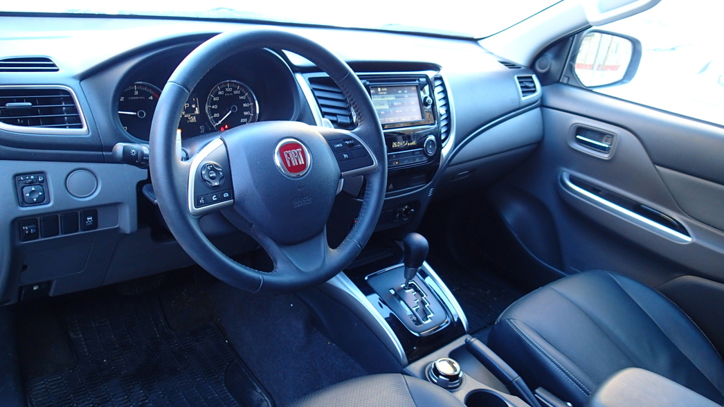 FIAT Fullback не имеет ничего общего с городскими мажорами, его кабину можно сравнить с добротно срубленной сторожкой, в которой сделан приличный ремонт. Кто знаком с Mitsubishi L200, тот незамедлительно обнаружит полное сходство в интерьерах двух пикапов: те же недорогие материалы отделки, классическая компоновка приборов и элементов управления.