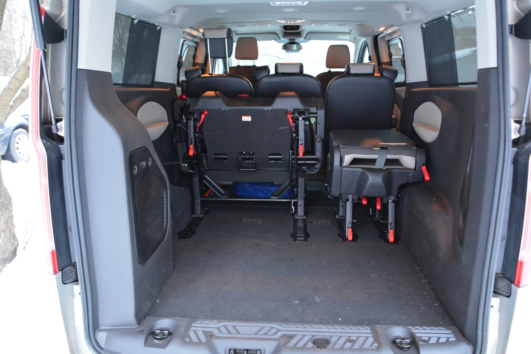 Чем особенно порадовал Tourneo Custom, так это сочетанием своих пассажирских и грузовых способностей. Скажу так: при разложенных всех семи пассажирских сиденьях, в багажном отсеке вполне можно перевозить горный велосипед со снятым передним колесом! А если поскладывать кресела заднего ряда, то машину вполне можно использовать как грузопассажирский фургон — настолько внушителен становится полезный объем. У VW Transporter, кстати, с этим делом все заметно скромнее.