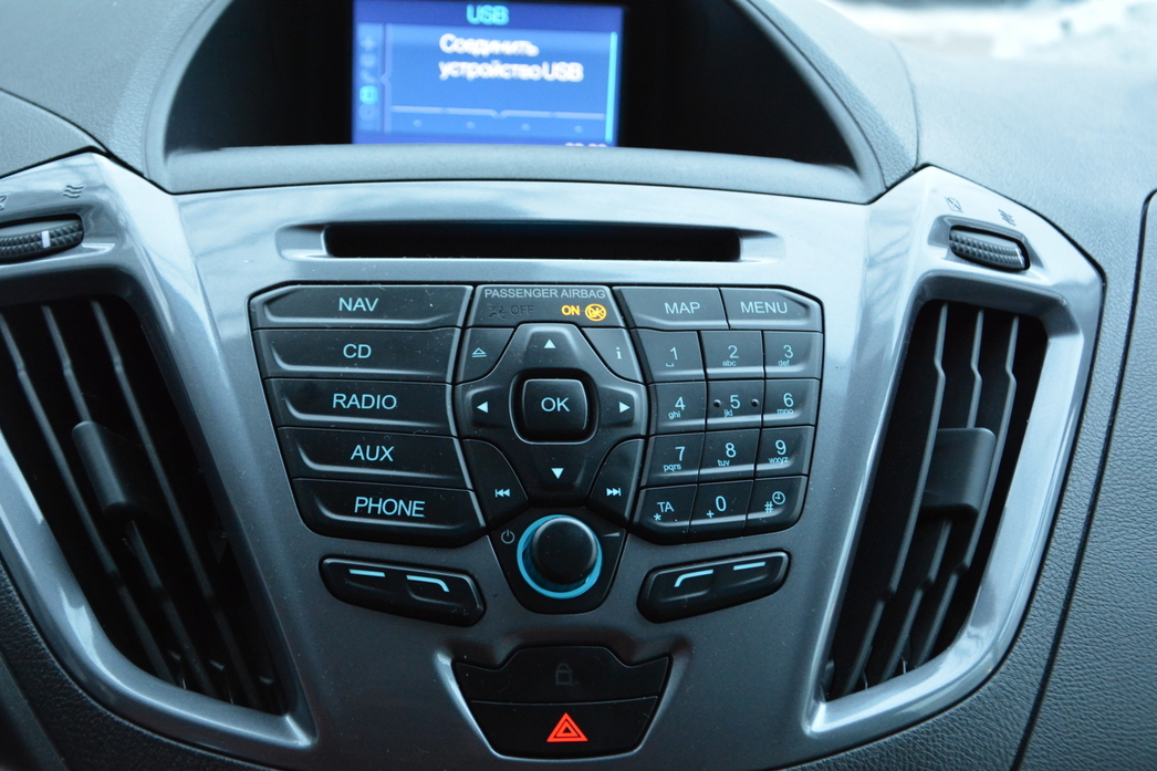 Хотя пластмасса тут, разумеется, не «дубовая» — это же не Renault какой-нибудь или Toyota! Просто нормальный не твердый качественный и функциональный пластик. Передняя панель машины, по большому счету, скомпилирована из блоков, применяющихся на прочих моделях марки. Человек, привыкший к интерьеру, скажем, Ford Focus, оказавшись за рулем Tourneo Custom, по большому счету, ничего особо нового для себя не обнаружит.Вплоть до наличия все той же фирменной «мультимедийки» от Ford — SYNC. Она, в частности, все также «сваливает» музыкальные треки из десятка «папок» на USB-флешке в один бесконечный плей-лист, с которым крайне сложно иметь дело.