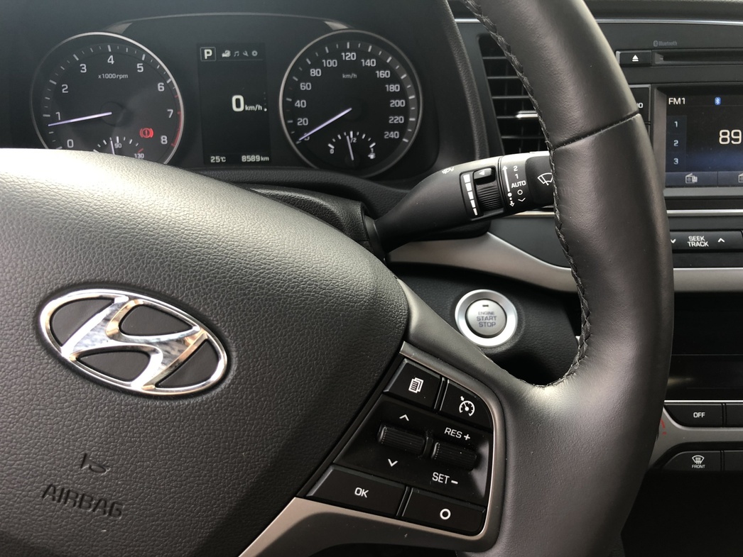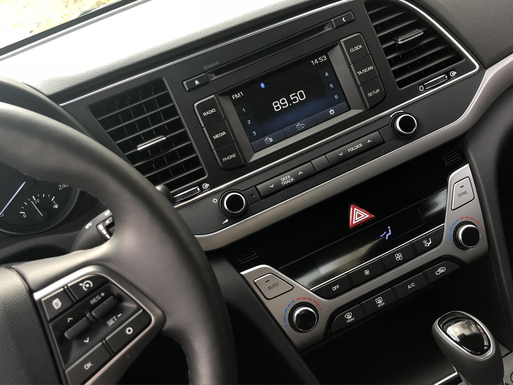 Присаживаюсь в водительское кресло, и Elantra заботливо подвигает кушетку согласно заданным ранее параметрам. Первое, что привлекает внимание — развернутая к драйверу центральная консоль и аккуратно выстроенные в ряд клавиши управления. Пластик хоть и жесткий, но отделка выполнена добротно и опрятно. Находиться в салоне этого автомобиля однозначно приятно.