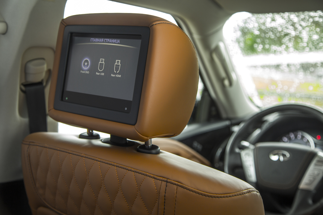 Среди прочих обновок — иного дизайна руль и рукоять коробки передач, а венчают картину новые восьмидюймовые мониторы в подголовниках, которые теперь работают отдельно друг от друга. Иными словами, дети не устроят драку за мультики — пока один ребенок считает «покемонов», другой может спокойно себе следить за процессом размножения бегемотов в программе про животных. В общем, понятия «модно» и «трендово» теперь и про QX80.